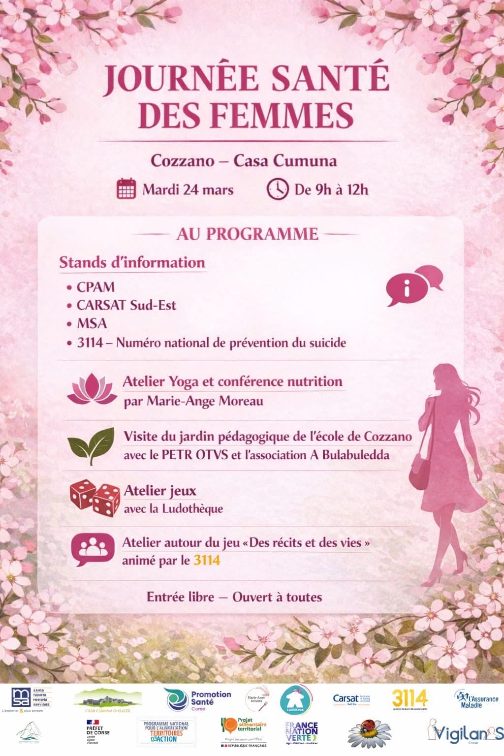 Le mardi 24 mars, la Commune de Cozzano accueillera une matinée dédiée à la santé et au bien-être des femmes, organisée par l’association régionale Promotion Santé Corse.