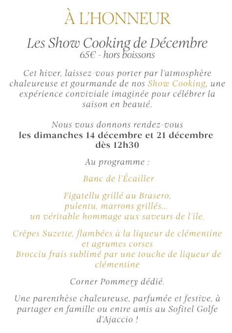 Ne manquez pas le Show Cooking de décembre au Sofitel Golf d’Ajaccio ! 🍴✨