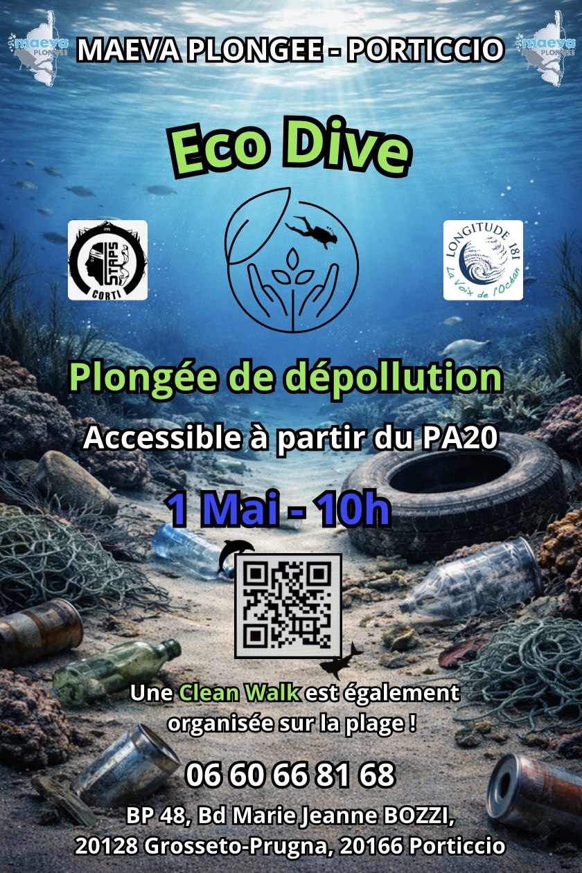 Prêt à allier passion de la plongée et protection de l’environnement ? Maeva Plongée – Porticcio organise une journée « Eco Dive » dédiée au nettoyage de nos fonds marins et de notre littoral.