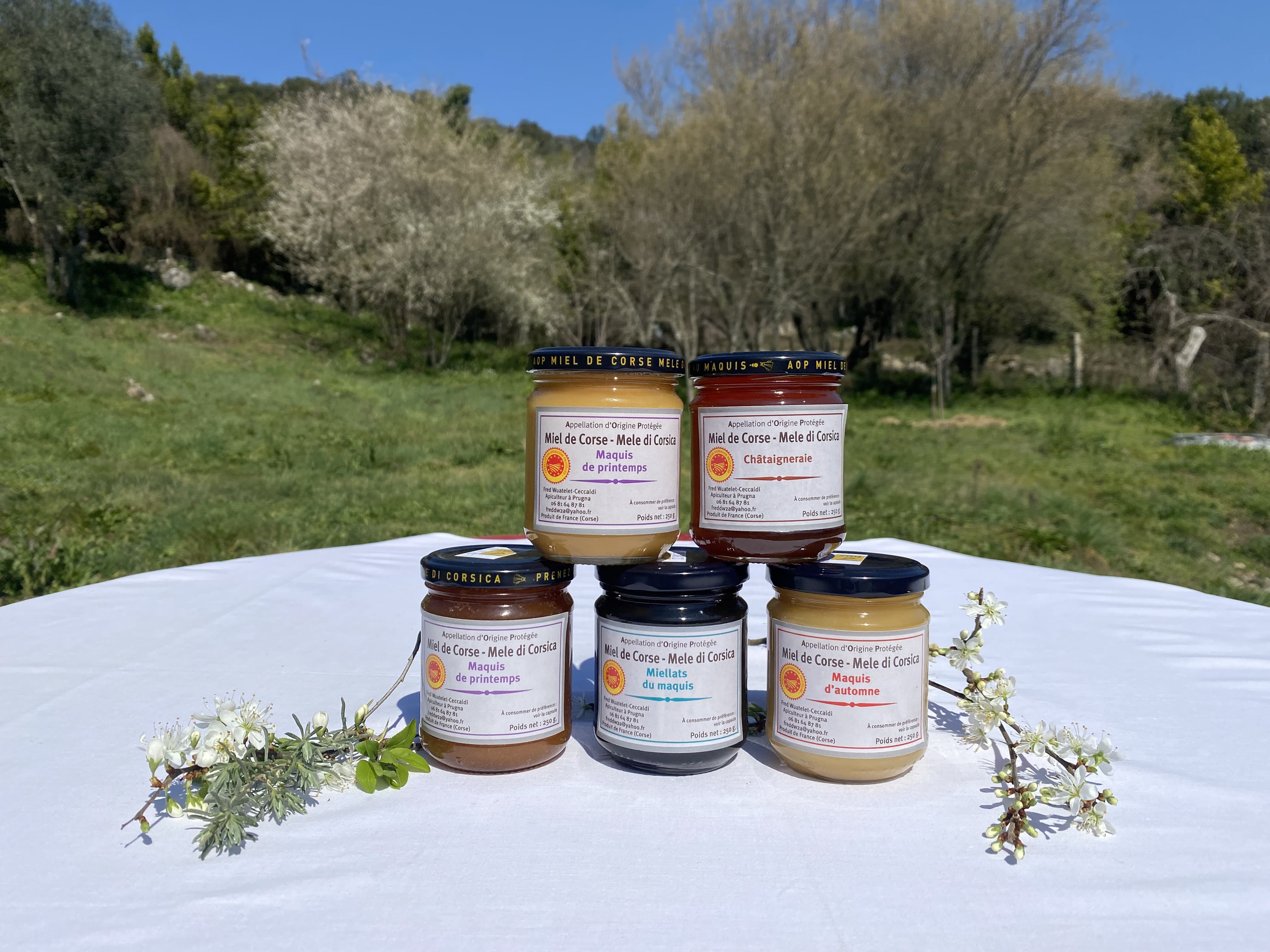 La miellerie propose divers types de miel en AOP (Appellation d’Origine Protégée), les produits sont de qualité supérieure en soulignant la richesse et la diversité de la flore corse.